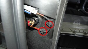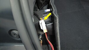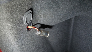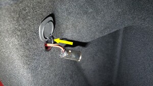 将后备箱 12V 电源插座连接器安装到后备箱左侧饰板上。