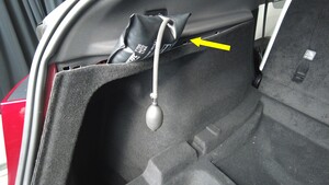 在后备箱左侧饰板和车辆之间的间隙内插入一个可充气袋,给袋子充气,以便接触作业区域。