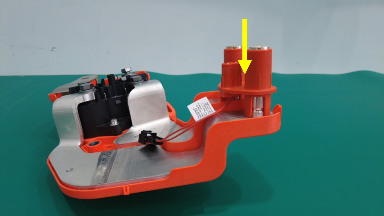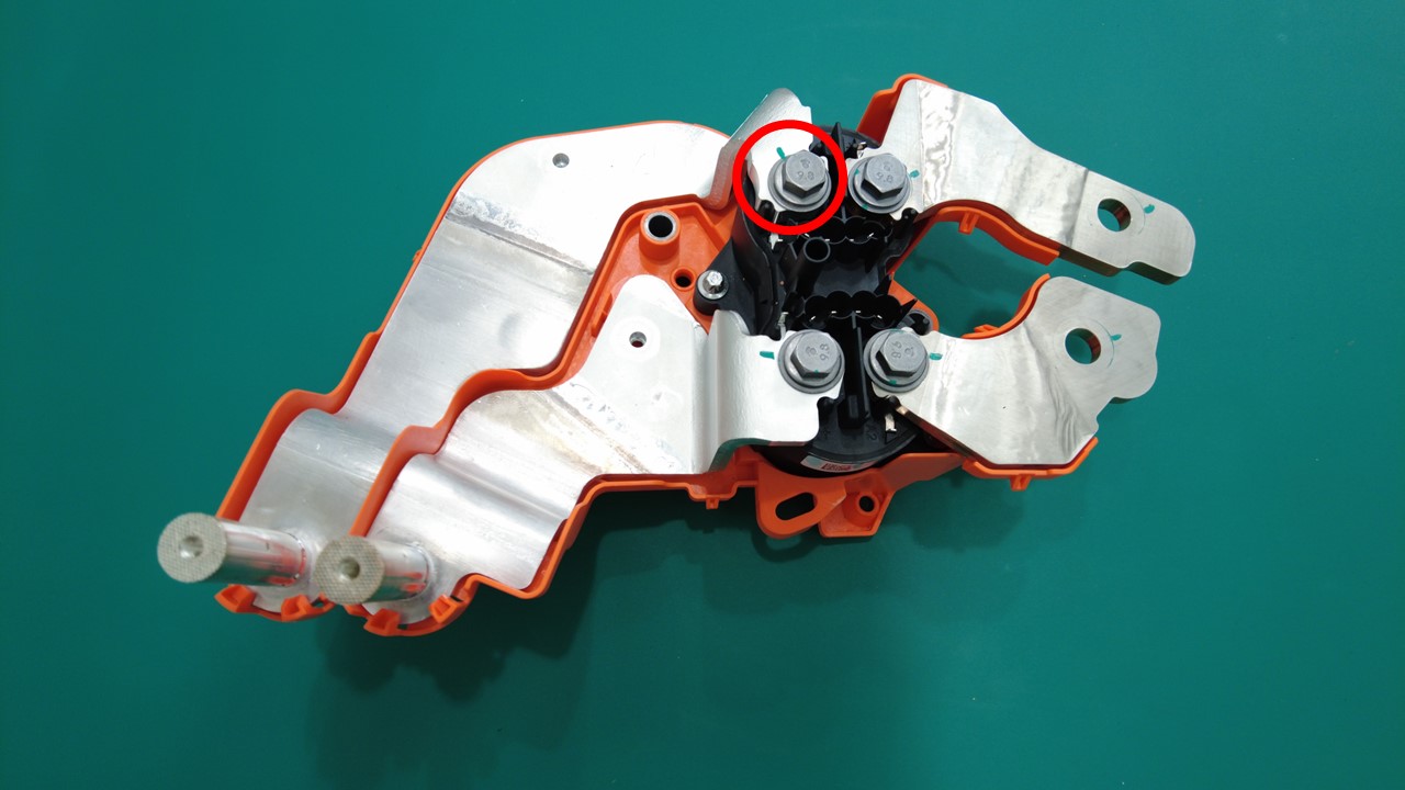| 将负极/正极输入快充母排固定到快充触点开关的螺纹胶螺栓 |