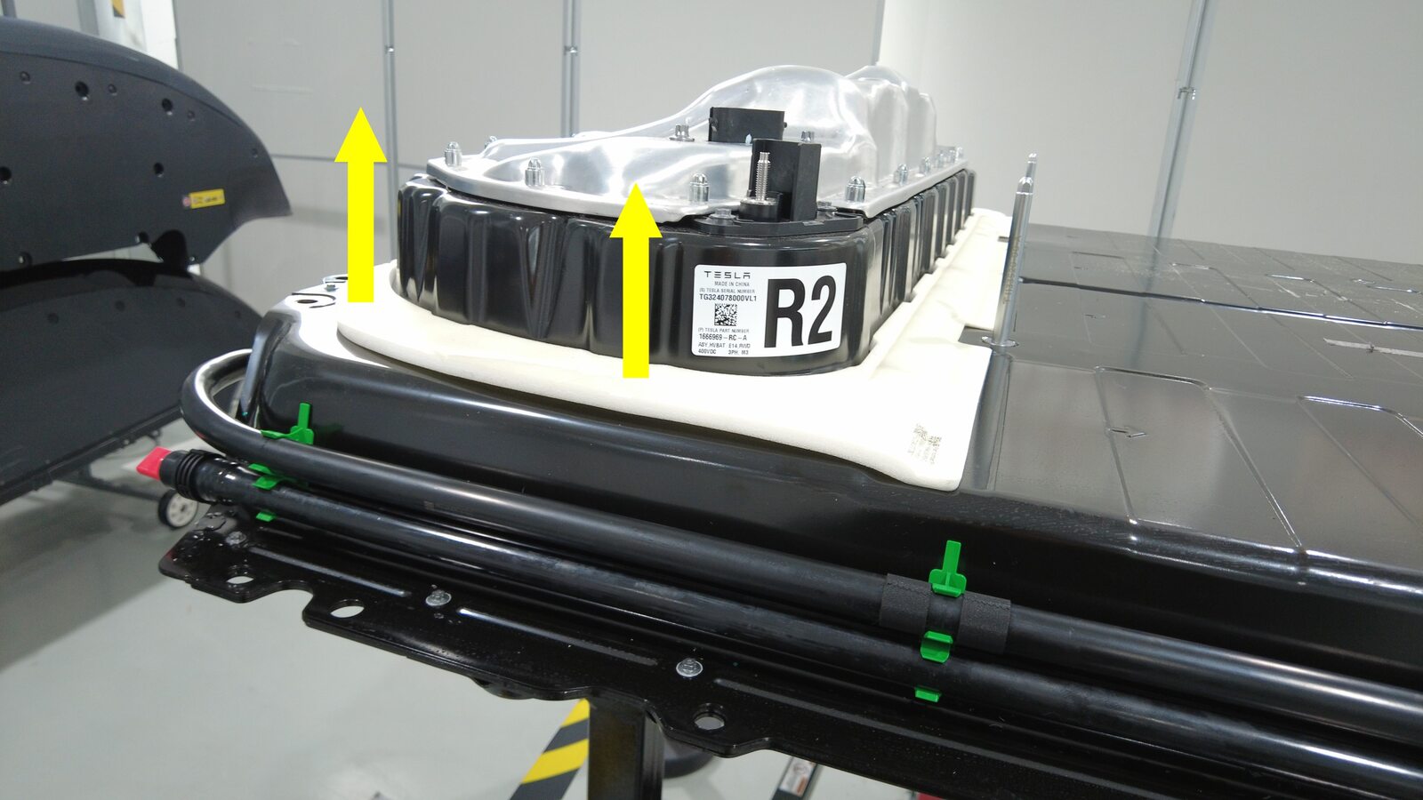 将新的高压电池仓接合密封件安装到高压电池组上。