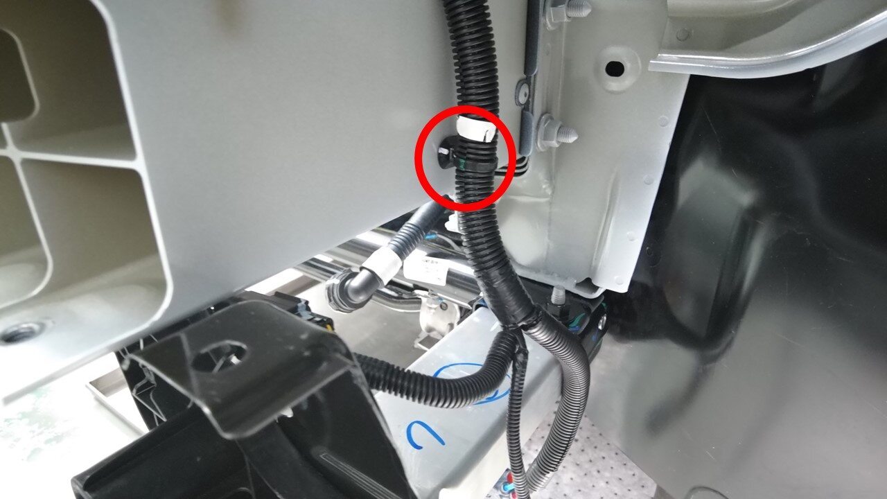 安装将左侧主线束固定到左前防撞罐上部的夹子。