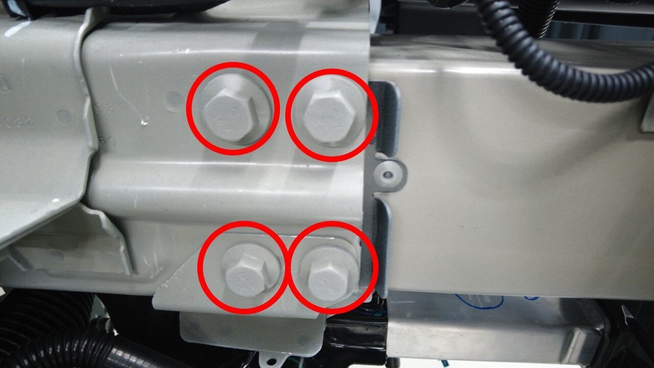 将左前上防撞罐放置到车辆上,然后安装新的螺栓(4 个),将防撞罐固定到车辆。