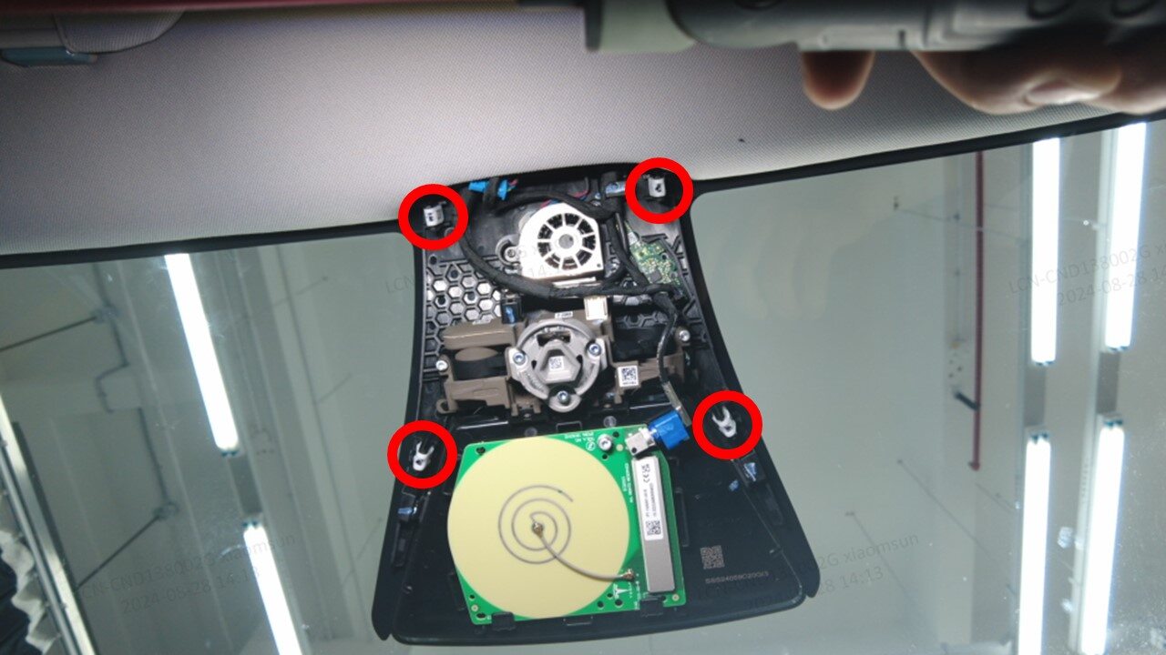警告请勿完全拆下摄像头上盖,因为此时电气线束仍与内部摄像头相连。注轻轻松开顶篷前边缘,以便接触卡子并将其拆下。