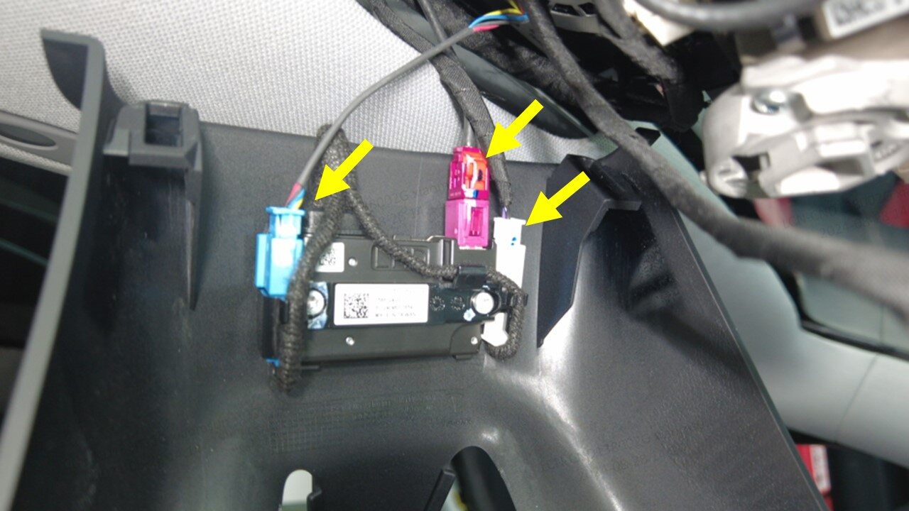 断开内部摄像头连接器(3 个),然后将摄像头上盖和内部摄像头总成从车辆上拆下。