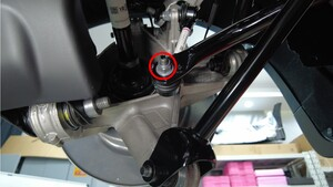 安装新的螺母,将平衡杆固定到左侧末端连杆。使用油性记号笔标记螺母。