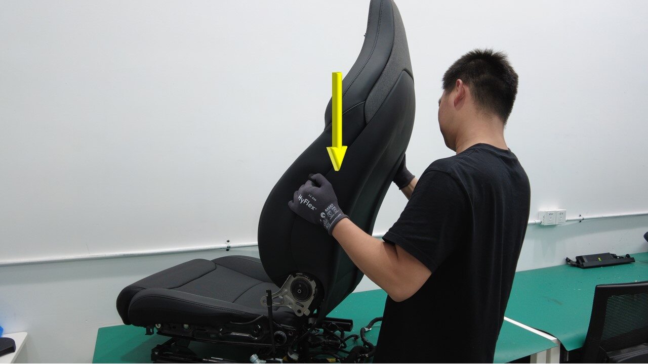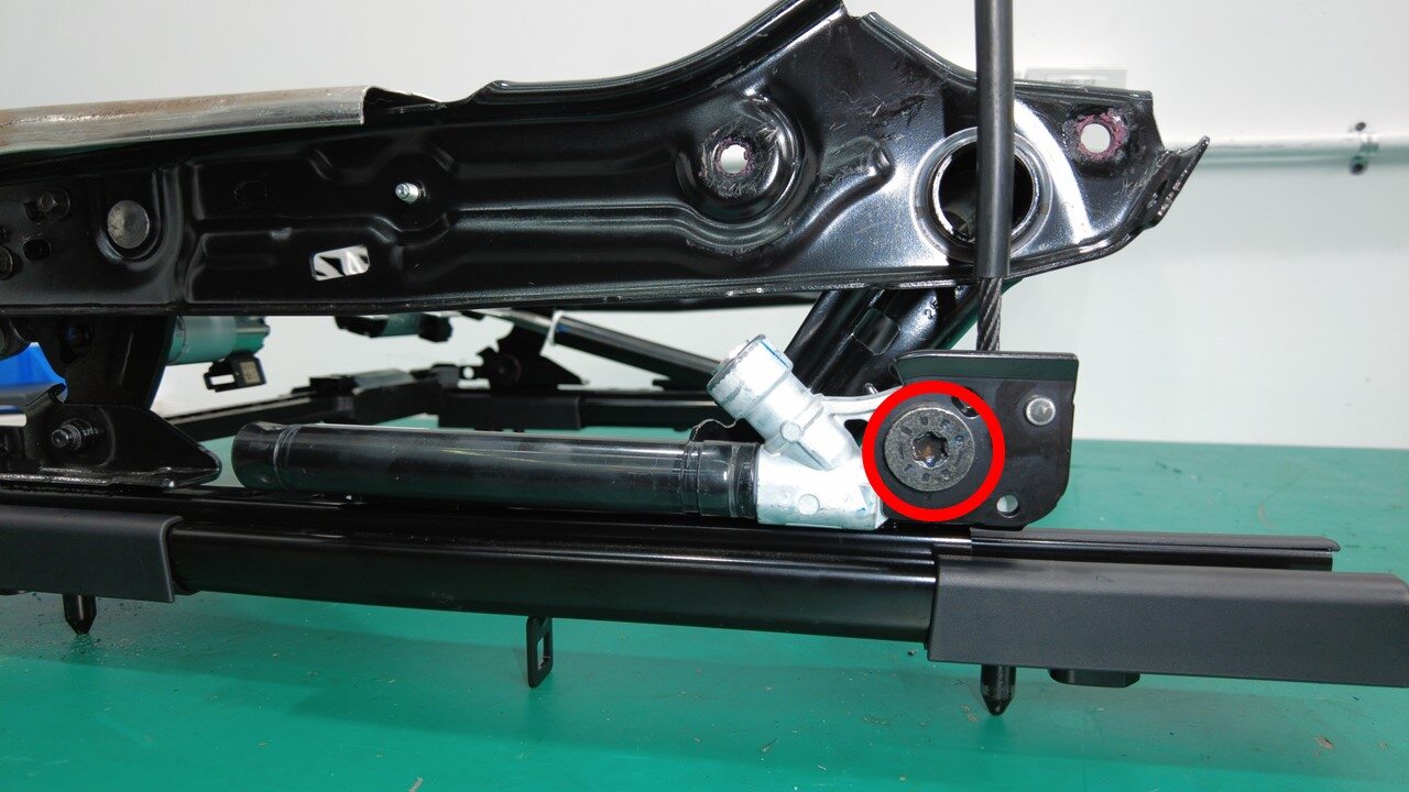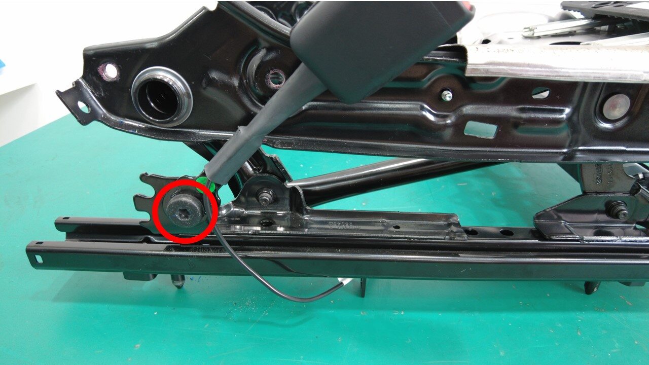 安装新的内外侧螺栓(4 个),将靠背框架固定到座垫框架上。