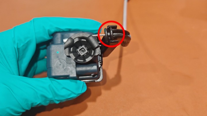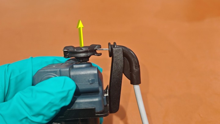 松开卡子,然后将释放缆索从闩锁传动装置上拆下。