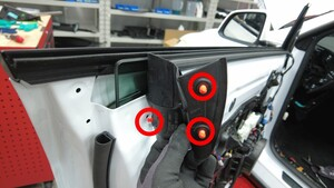 拆下将饰板固定到左前车门的螺栓(3 个)。