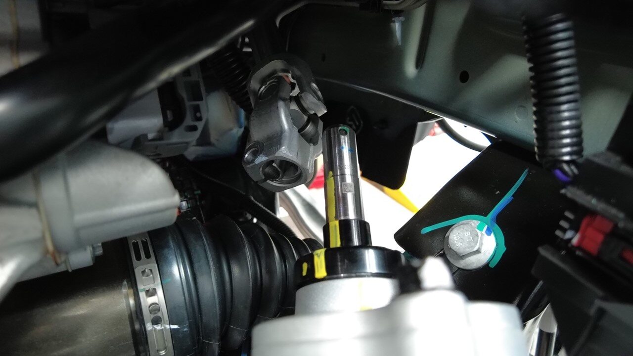 向上滑动电动转向柱,将其从转向机总成上拆下。