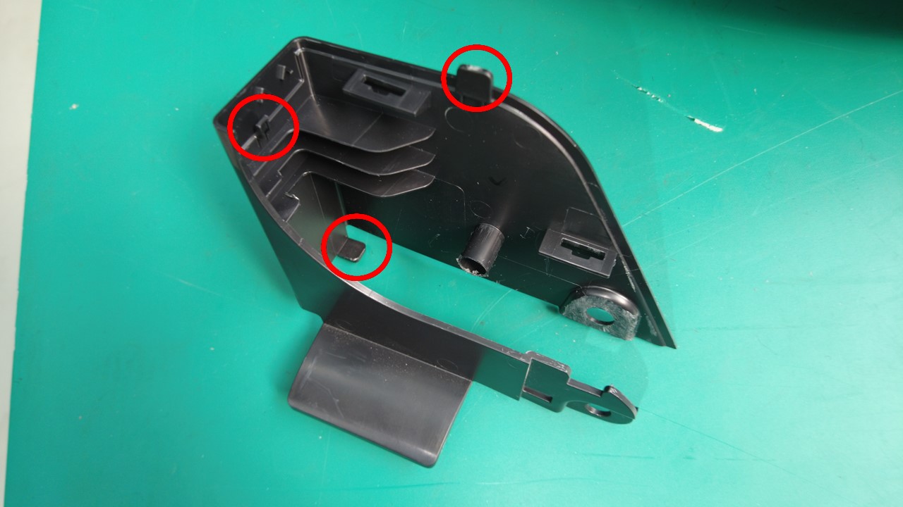 紧固卡子(2 个)和锁片(3 个),将第三排内侧左护罩安装到座椅靠背框架总成上。