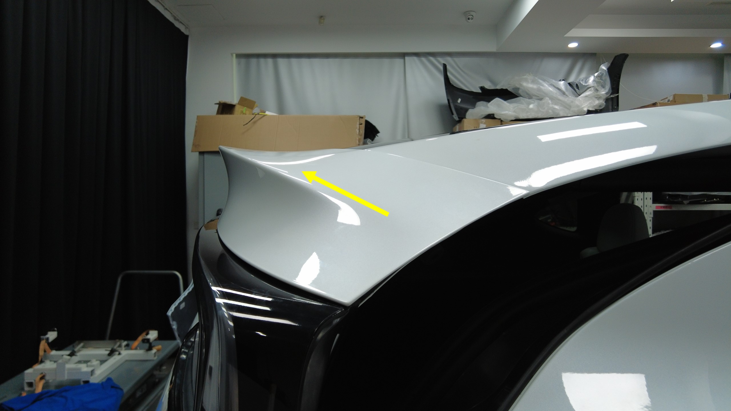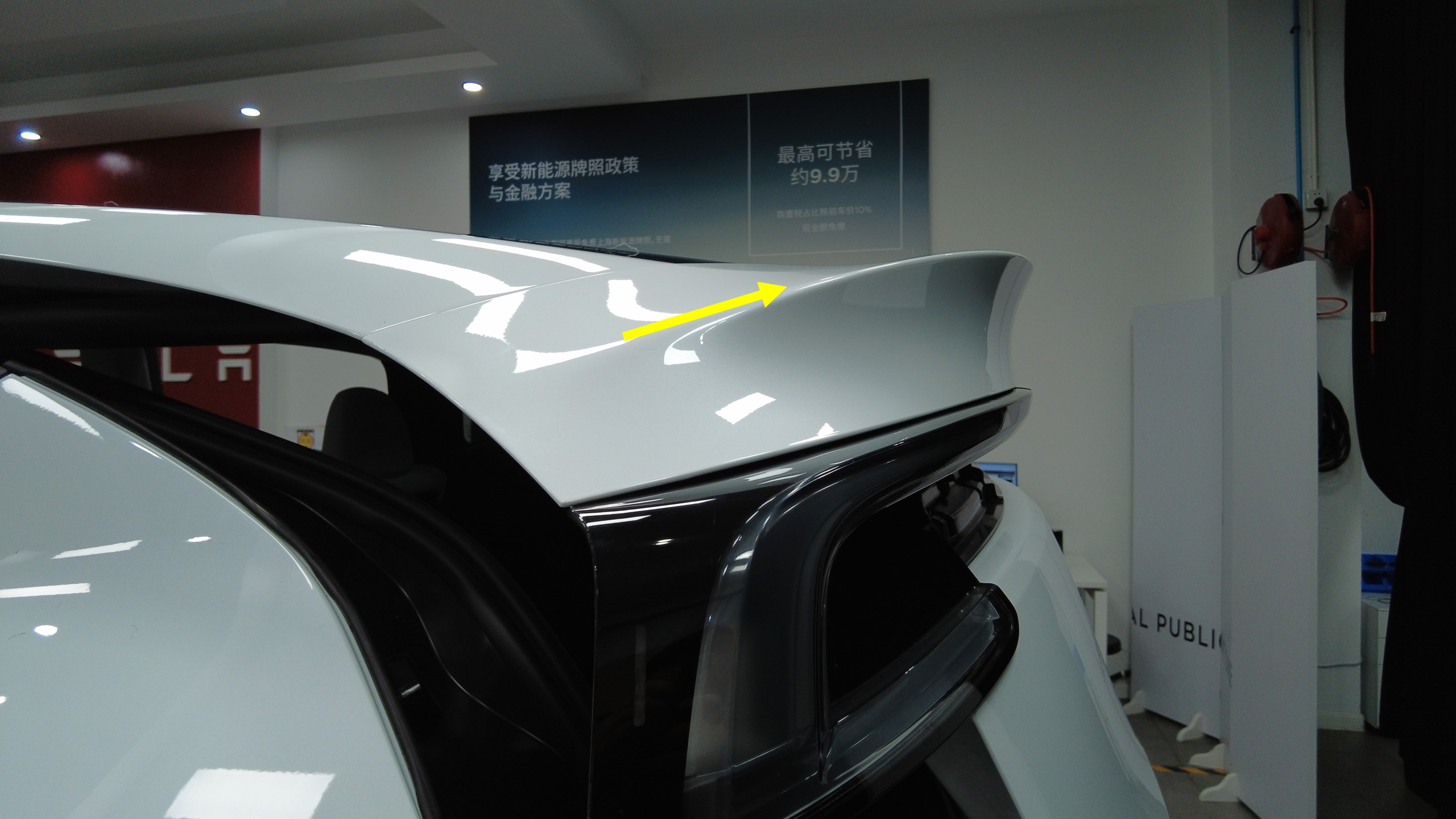 注确保密封条与扰流板外板上边缘正确重叠,无任何间隙。