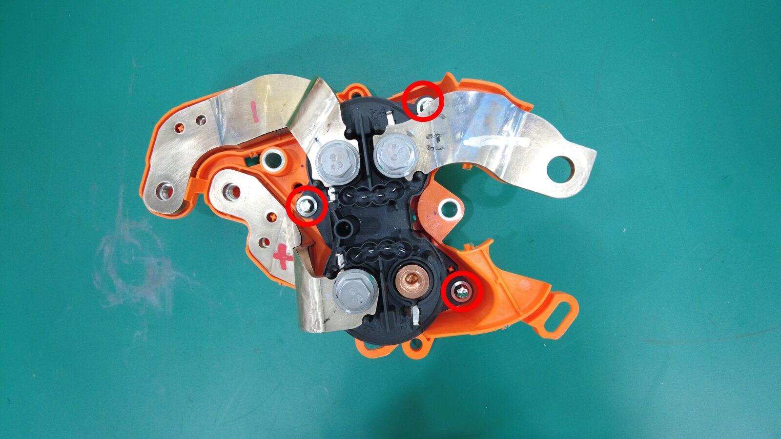 | 将下部快充绝缘体固定到快充触点开关的螺栓(3 个) |