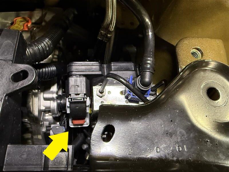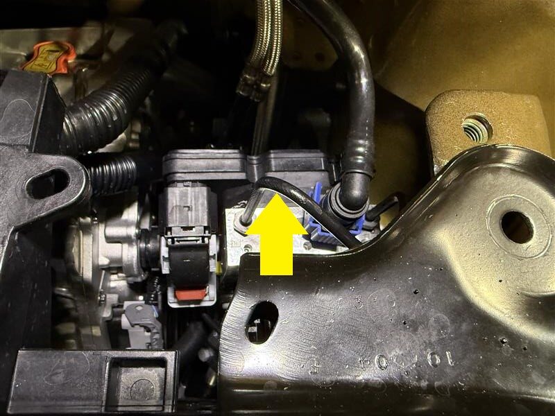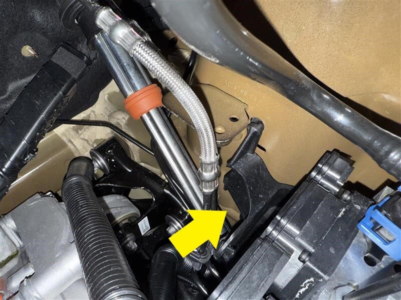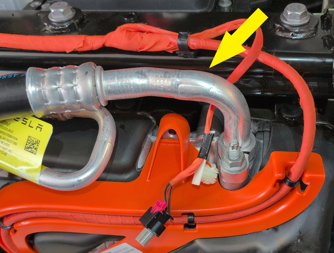 Tuck the HVIL harness branch between the A/C compressor pipes, as pictured.