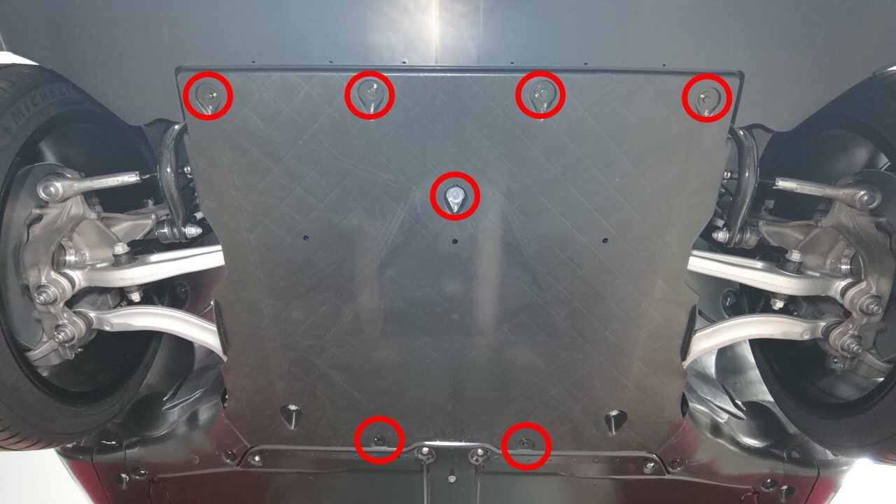注7x bolts, 10mm, 5 Nm, Apply Loctite 222 onto front aero shield bolts and install fasteners to front aero shield