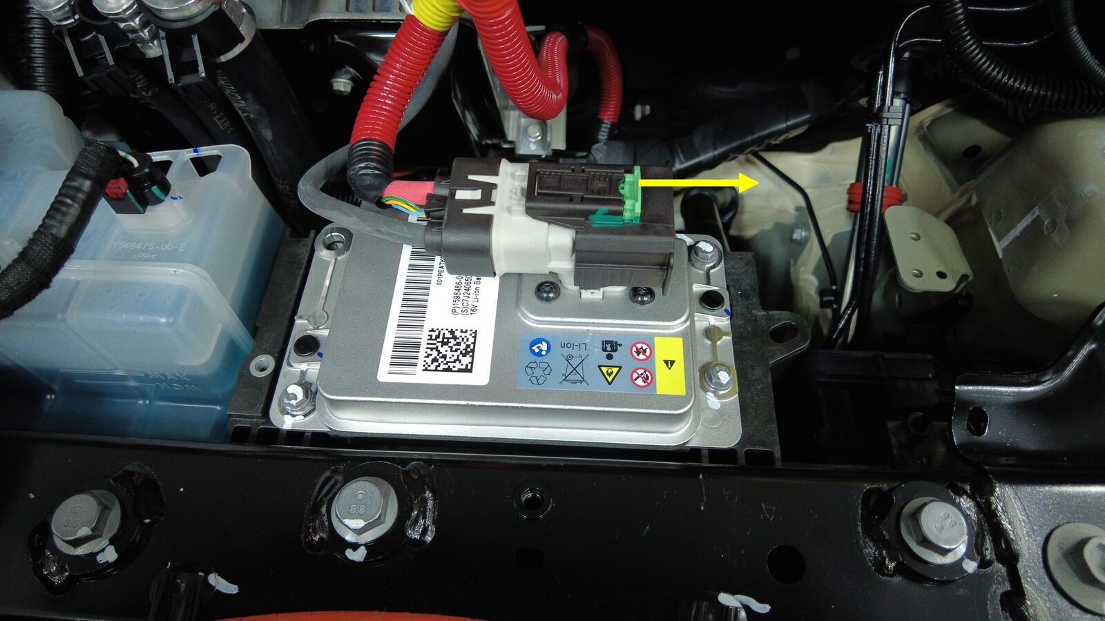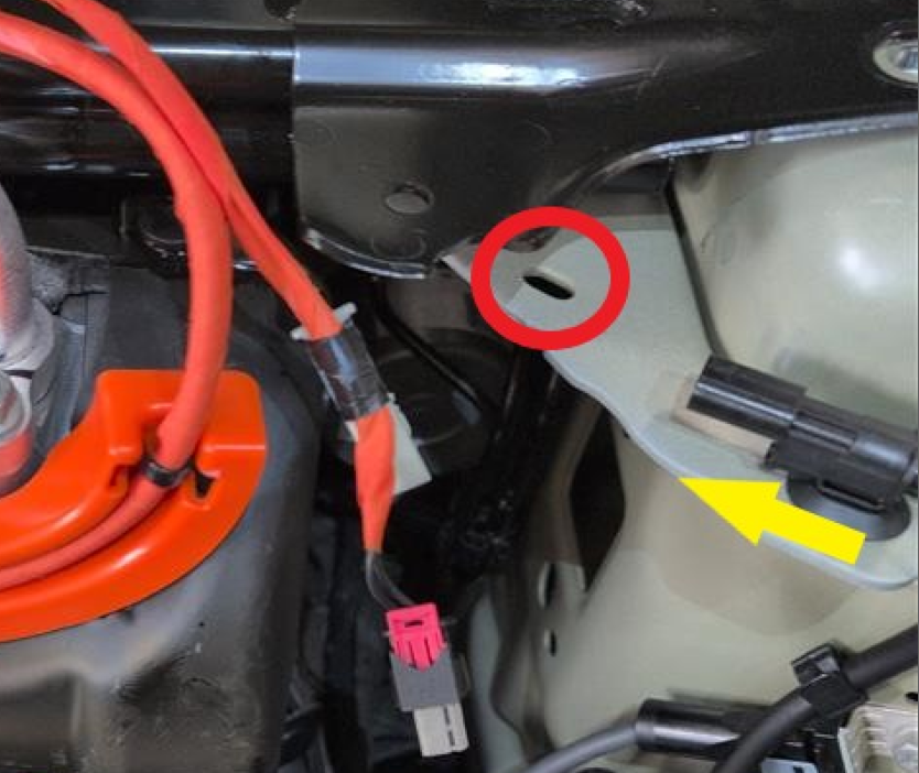 Disconnect the HVIL connector from the LH shock tower, and then release the shock tower fir tree clip for that harness branch.
