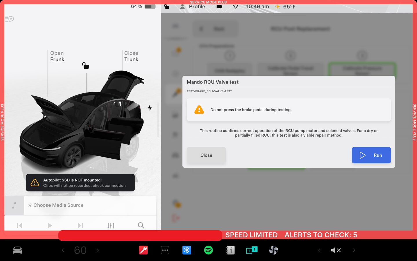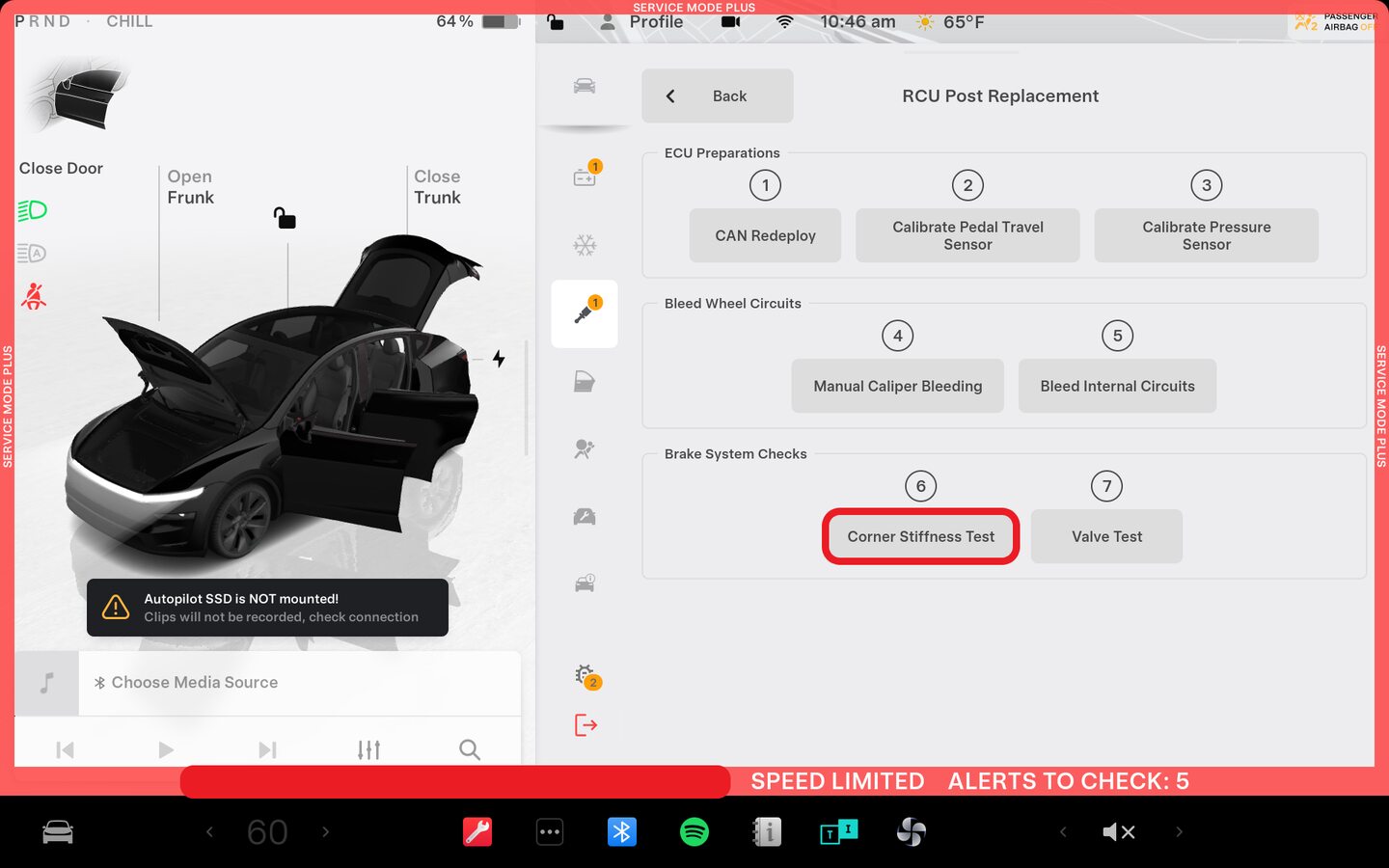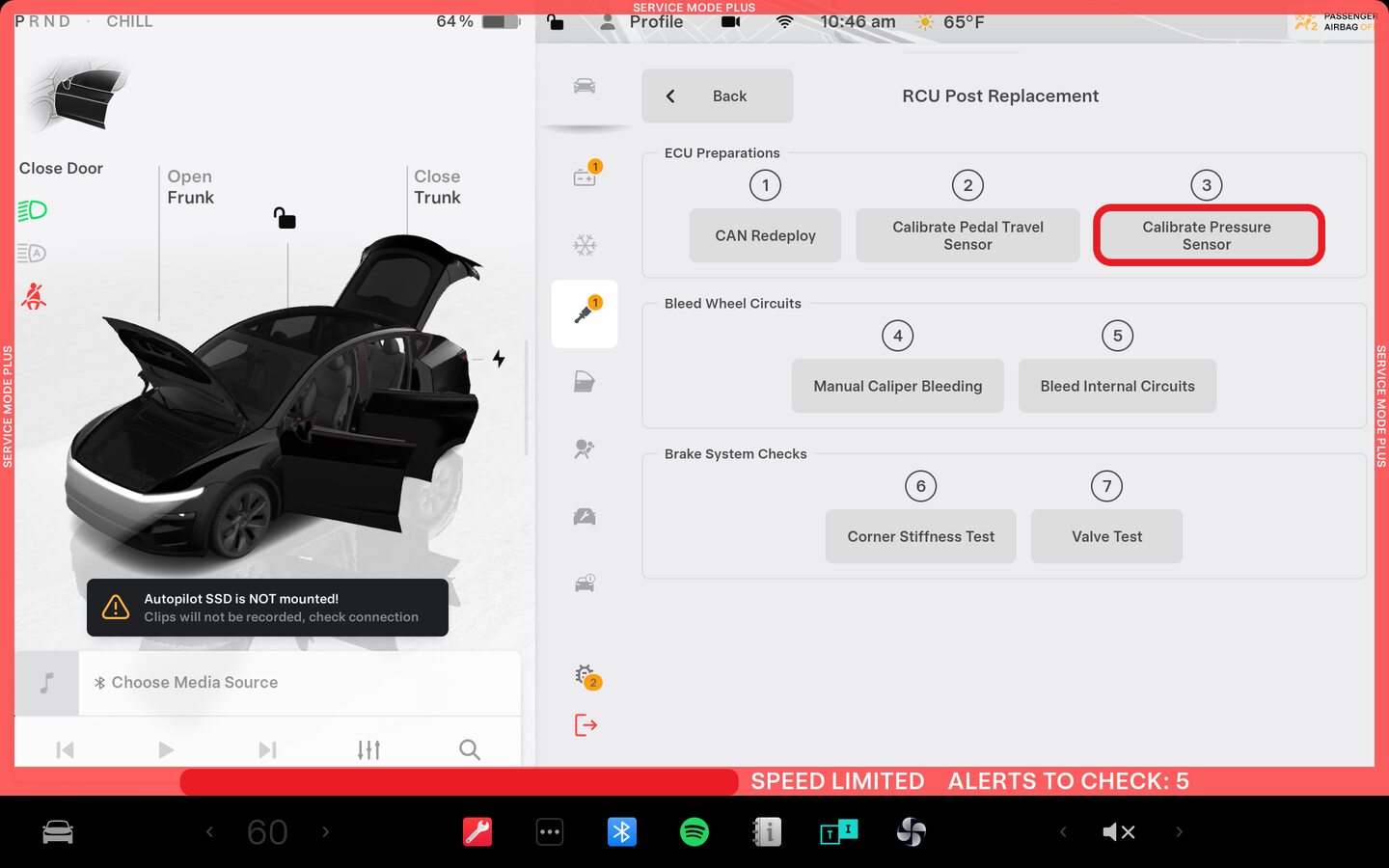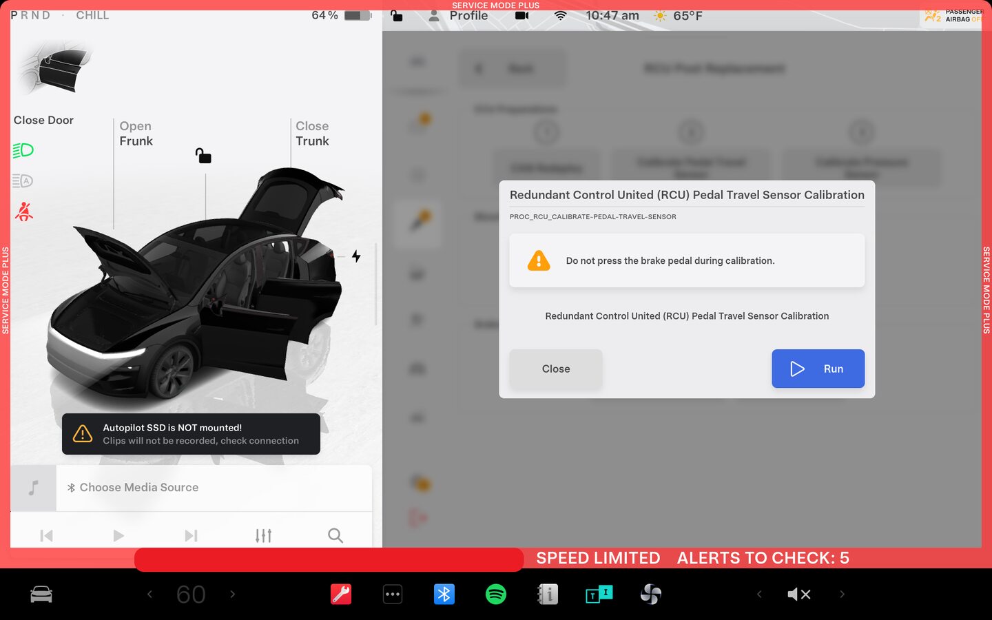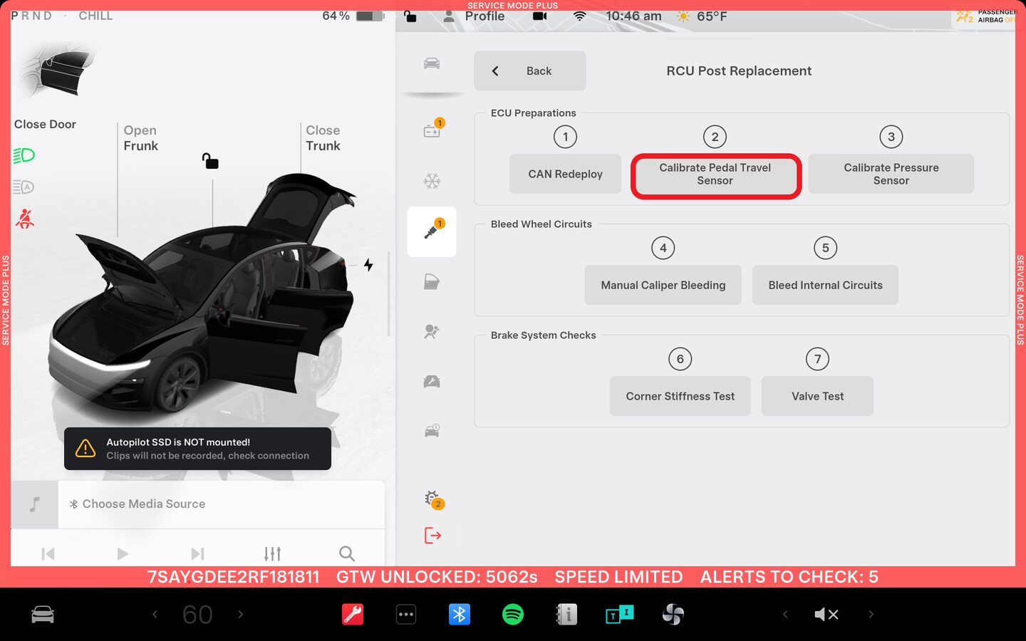 注Select Chassis > Procedures > RCU Post Replacement > Pedal Travel Sensor, click Run, follow on screen instructions to press/release brake pedal, close once routine is succeeded,