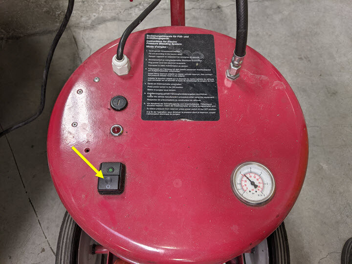 注Connect power supply to bleeder and turn on the power to set pressure to 30 psi, Attach the brake reservoir hose to the brake adapter at this time