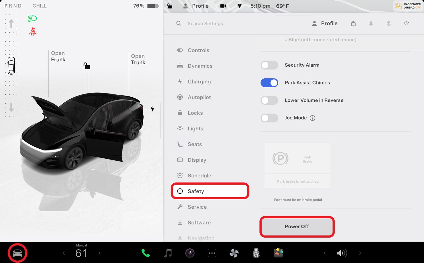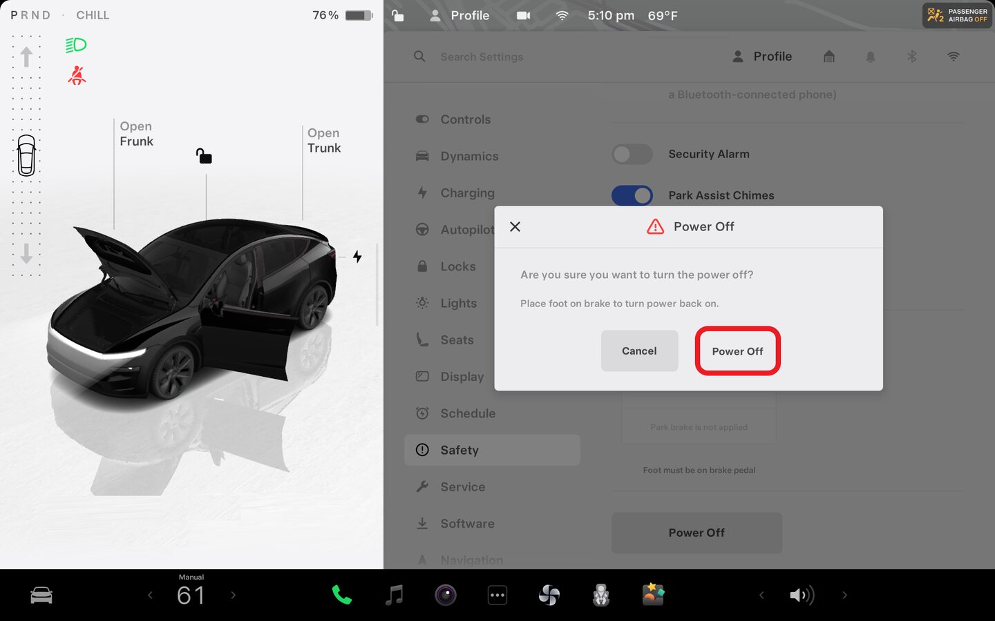 注Via Controls > Safety > Power off, Select "Power Off" button at warning dialogue box