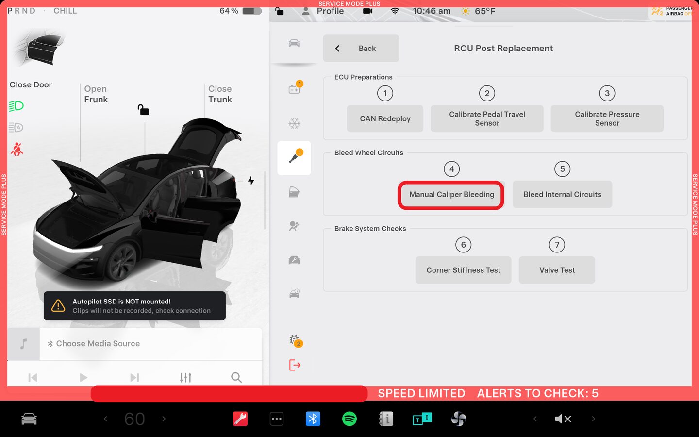注Select Chassis > Procedures > RCU Post Replacement >Manual Caliper Bleed
