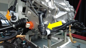 紧固将前驱动单元变流器出口软管固定到 90 度液力联轴节的弹簧夹。