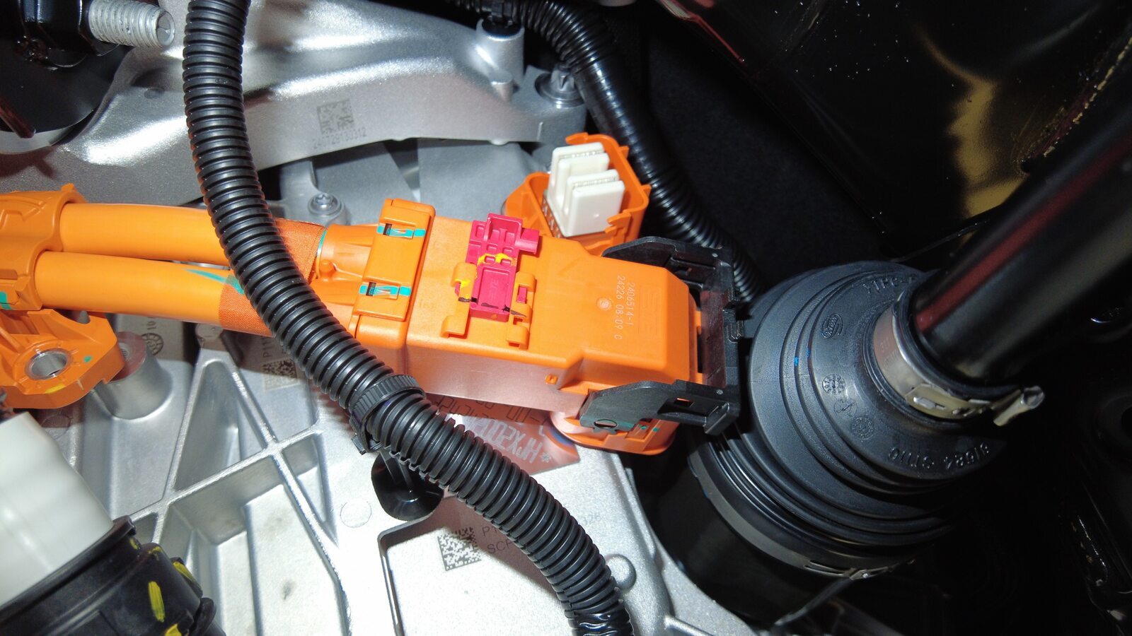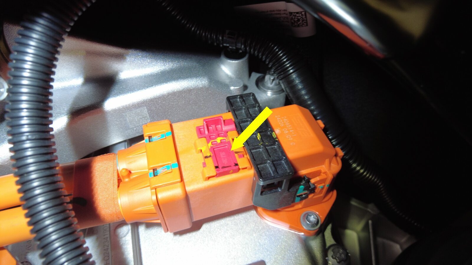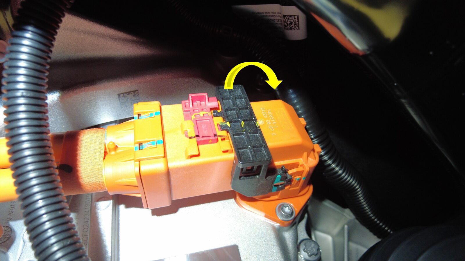 松开后驱动电机高压线束连接器。
