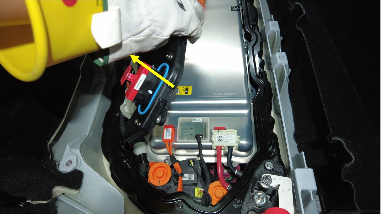 - 拆下烟火电池断接开关。请参阅高压电池 - 烟火隔离开关 ((拆卸和更换))。