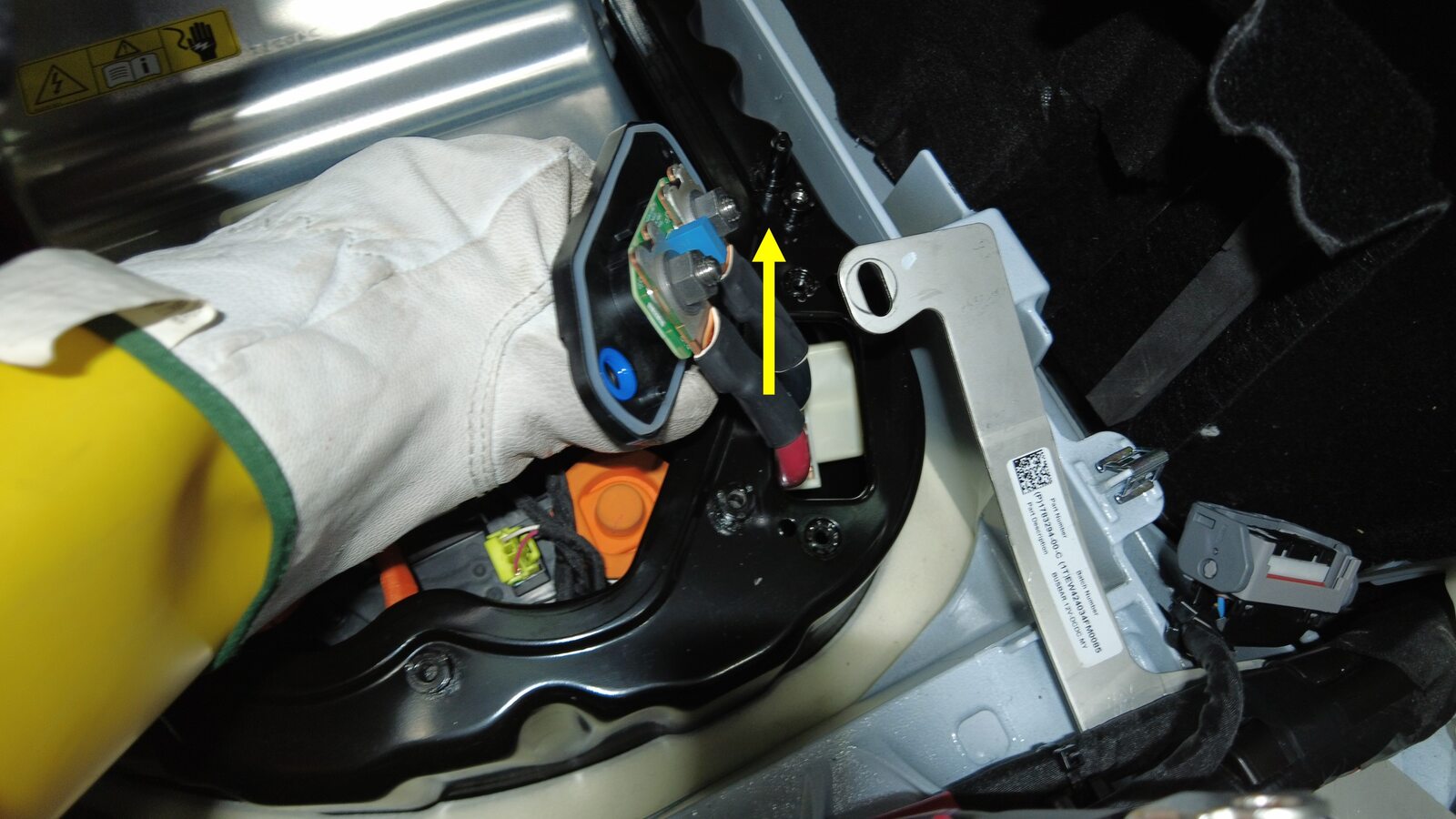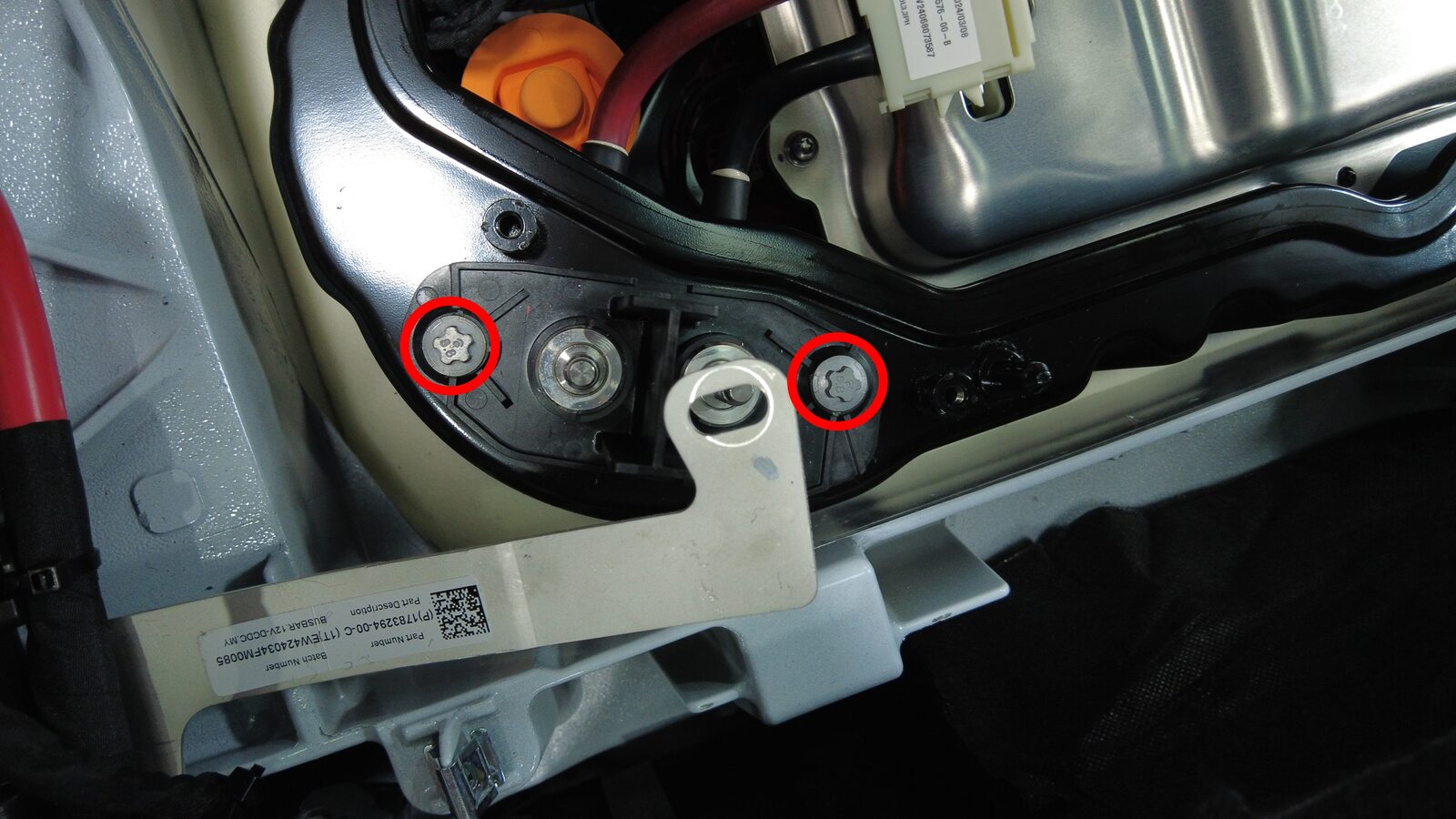 安装将直流-直流直通件固定到高压电池仓的螺栓。