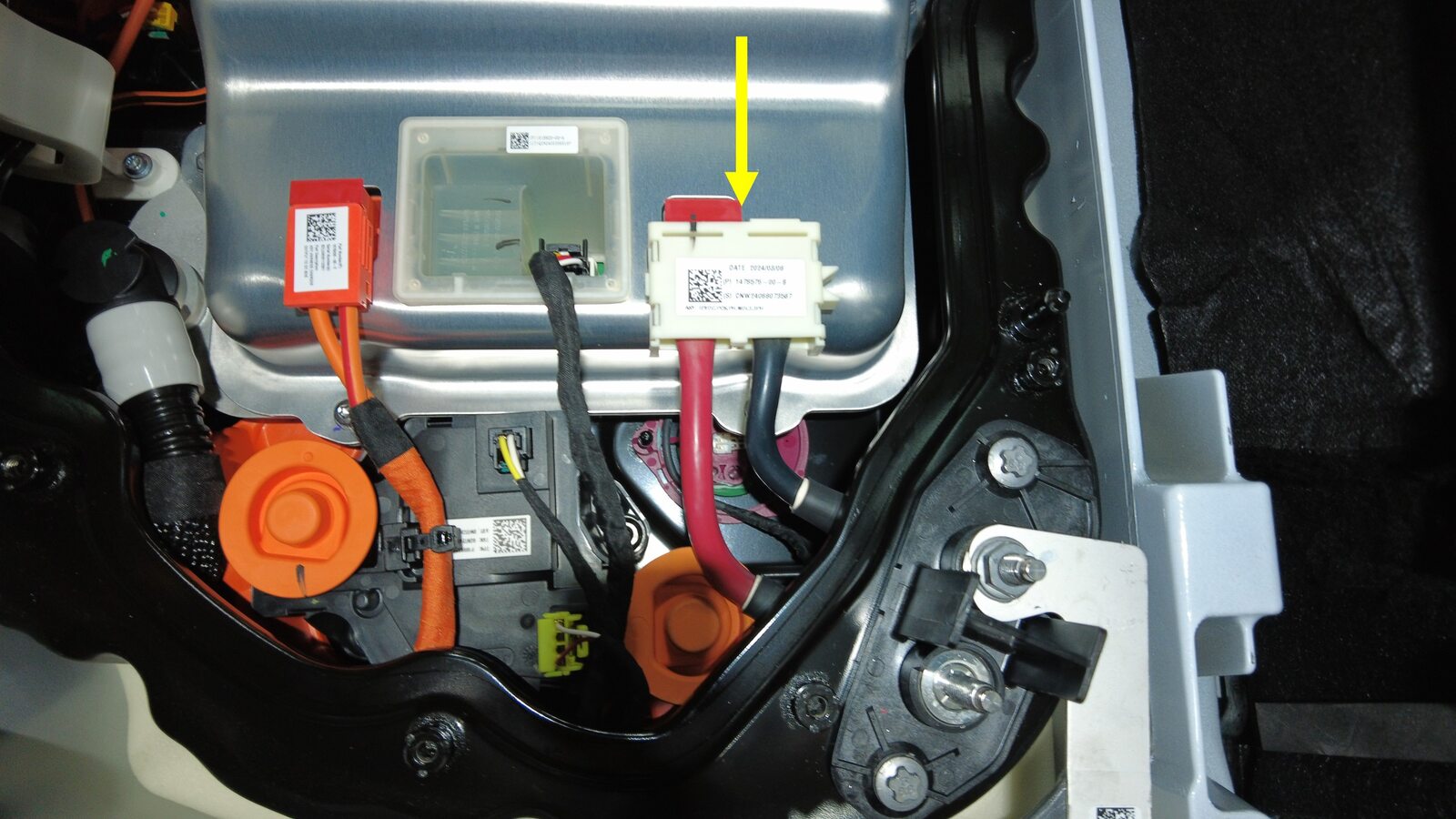 - 将直流-直流直通件放置在高压电池仓上,以备安装。