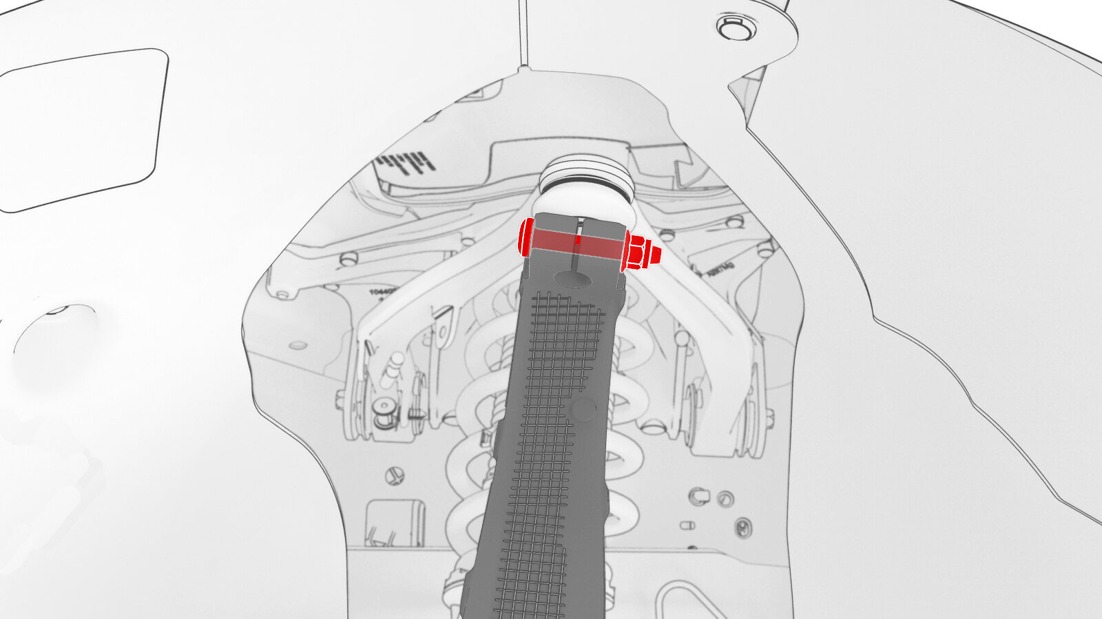 - 从前侧上方控制臂支座上取下 FUCA 行驶高度测量工具。
