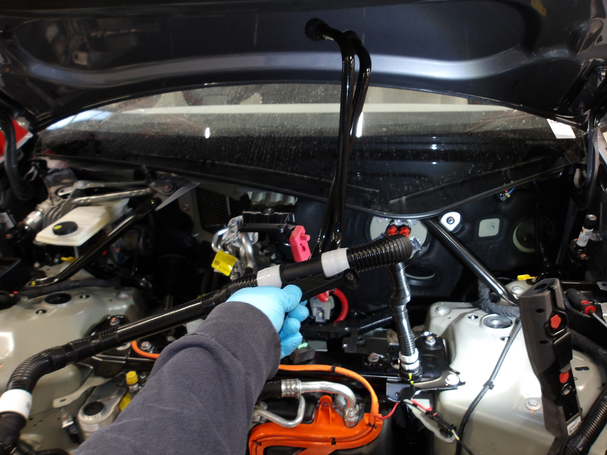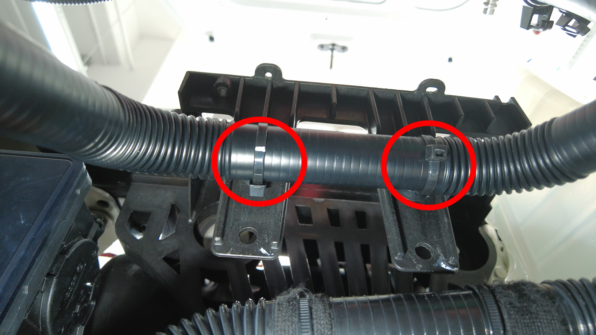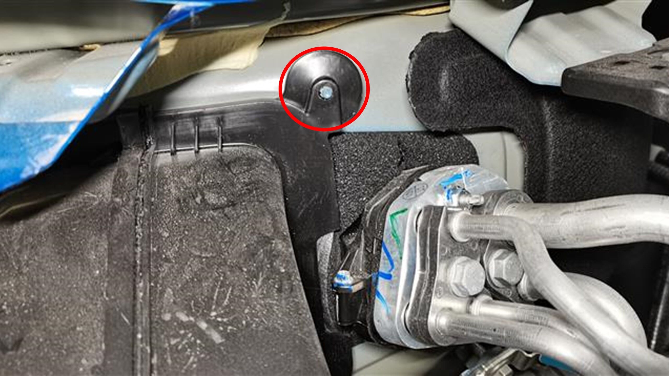 松开将冷却器至电池软管固定到前围板横梁的卡子。