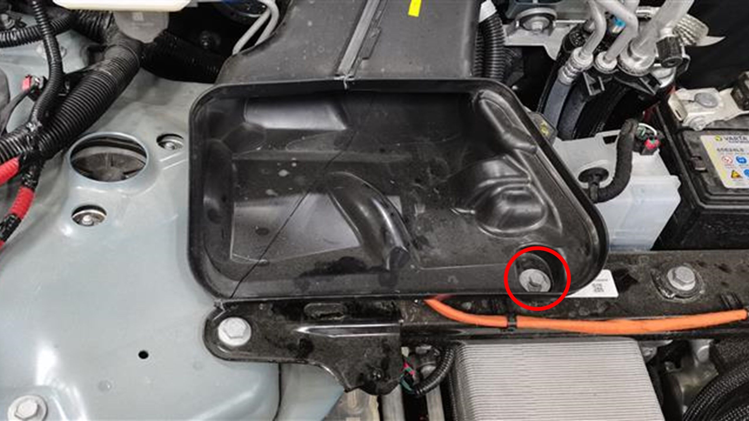 - 在高压电池左前侧下方放置一个冷却液排放容器。