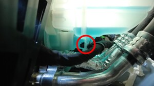 松开弹簧夹,然后将冷却器至电池软管从超级歧管上拆下。
