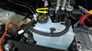 松开将电气线束固定到冷却液罐顶部的夹子。