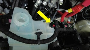 在冷却液罐附近,将电气连接器连接到动力总成供给软管传感器。