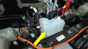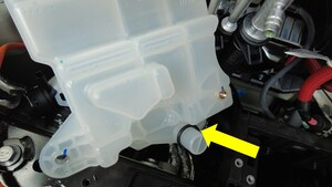 将冷却液罐向车尾方向移动,然后向上旋转,将其从车辆上拆下。