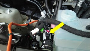 在冷却液罐附近,将电气连接器与冷却器至电池软管传感器相连。