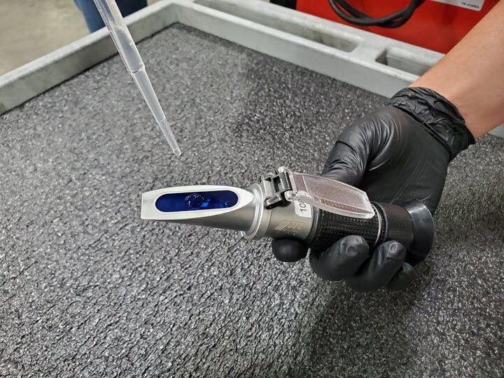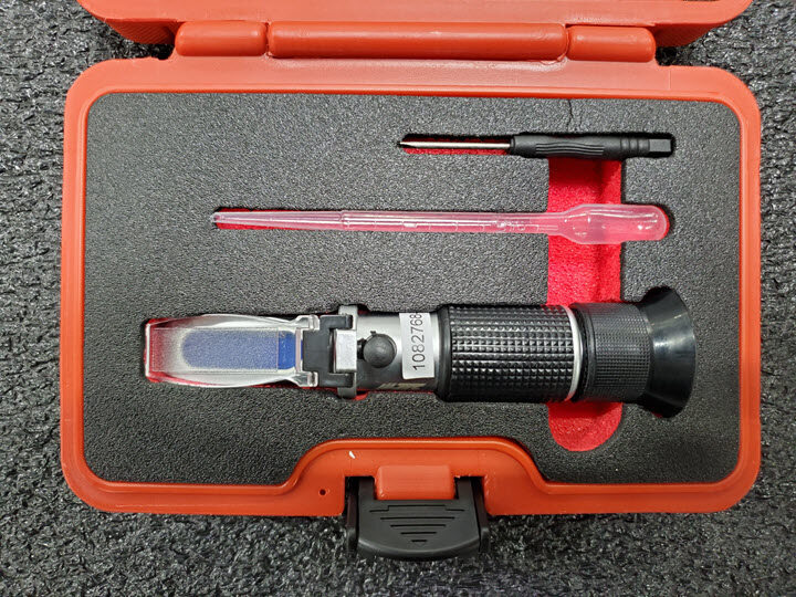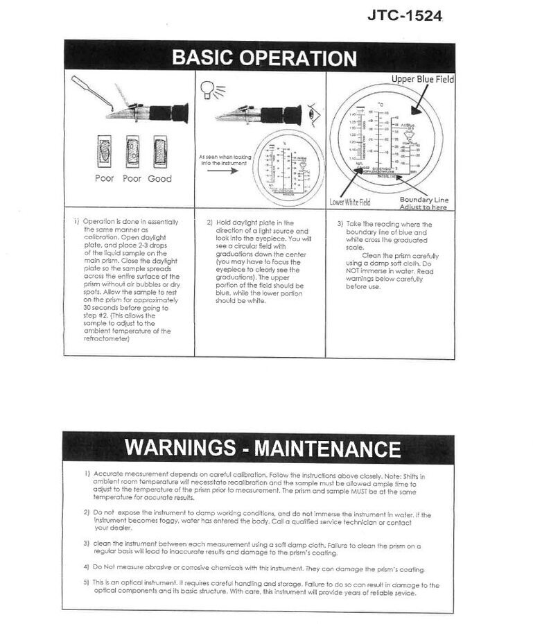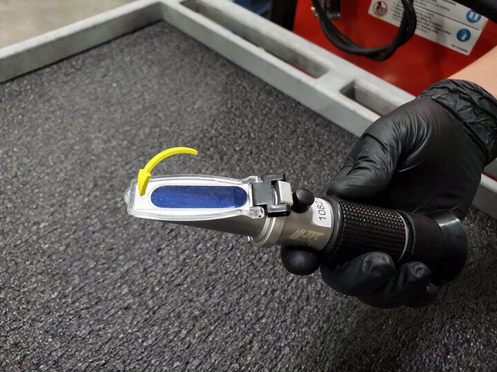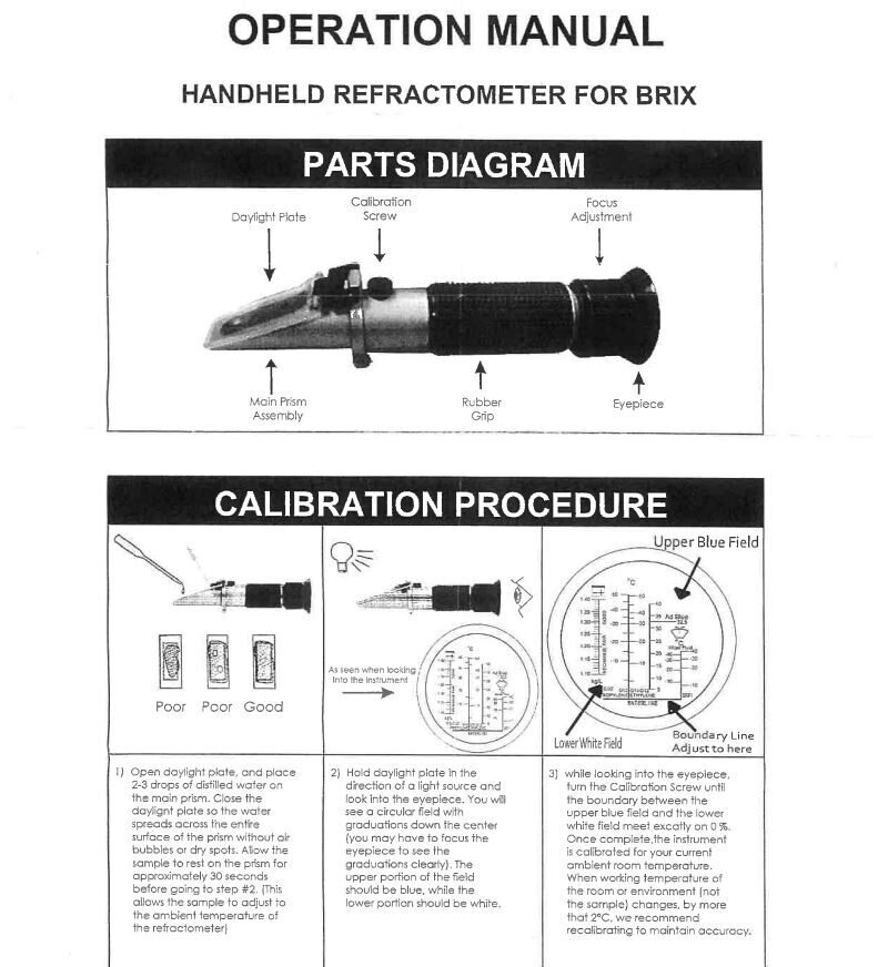 - 将折射仪对准光源,然后通过目镜观察。如果下部白场未在水位线处,请校准折射仪。