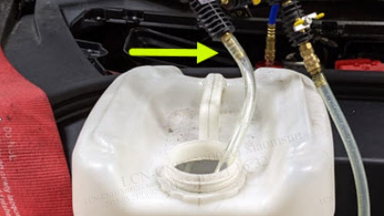 注在整个过程中,确保重新加注软管末端完全浸入冷却液。
