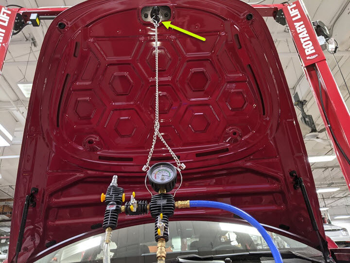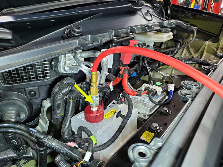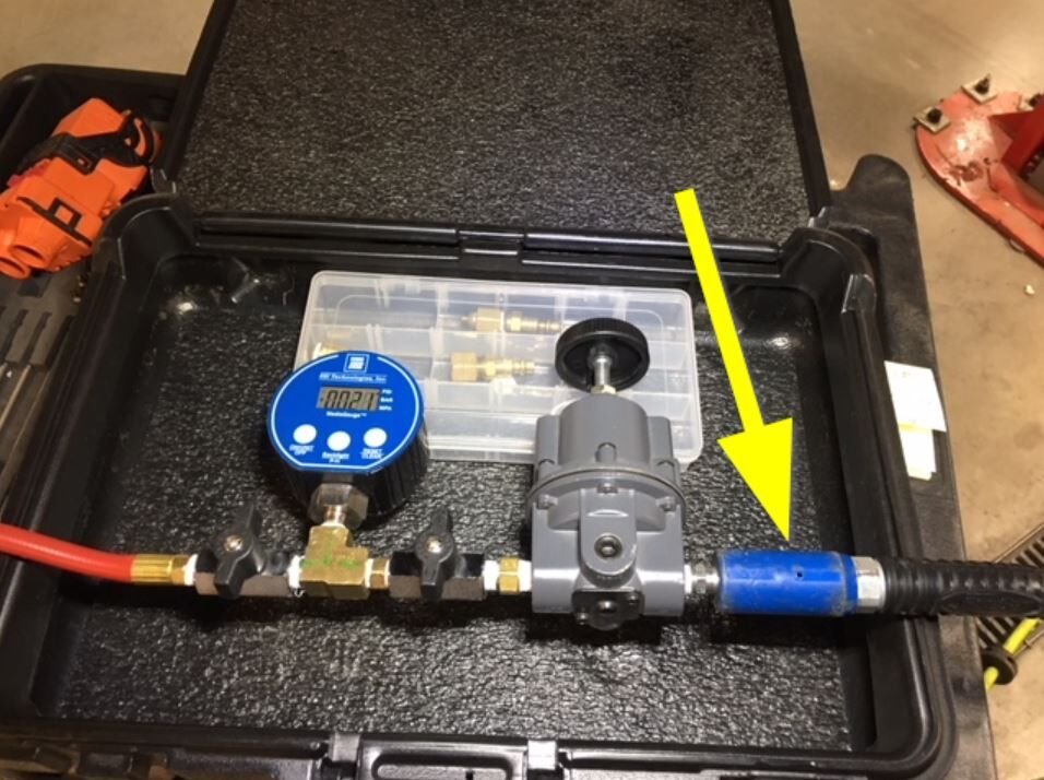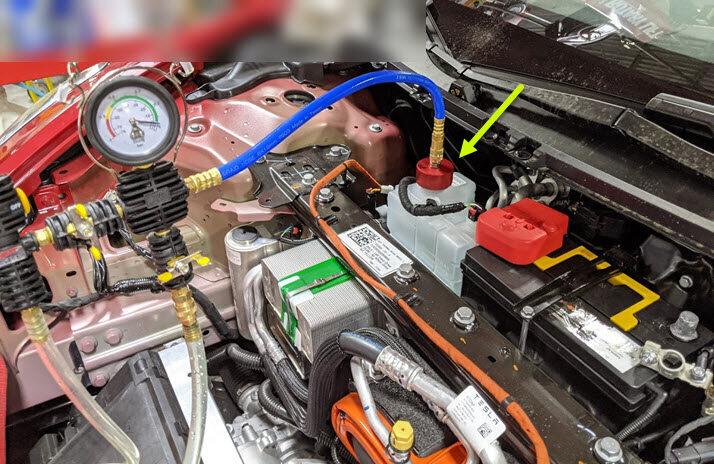 将外壳泄漏测试仪 (1140501-00-A) 连接到冷却液储液罐压力测试适配器。