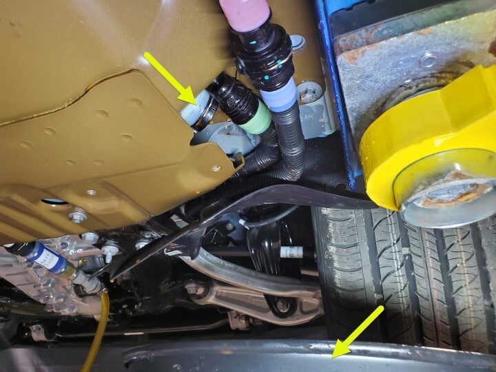 - 在车辆右前部下方放置一个冷却液排放容器。
