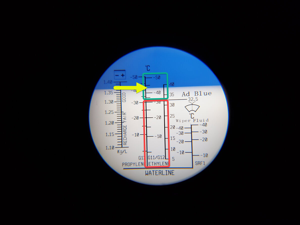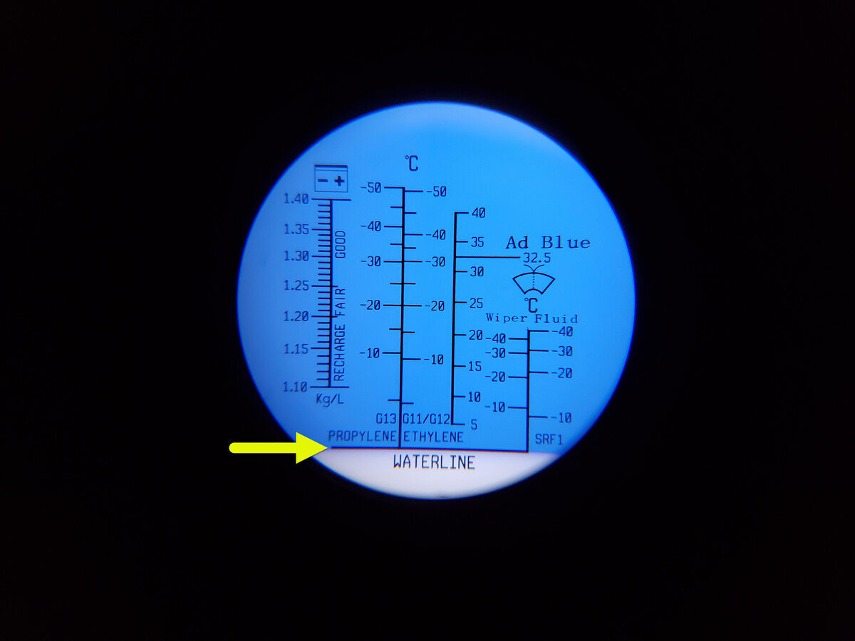 - 如果下部白场位于 -32 摄氏度( -26 华氏度)或温度更低区域,则说明冷却液冰点温度符合规格。继续执行下一步骤。