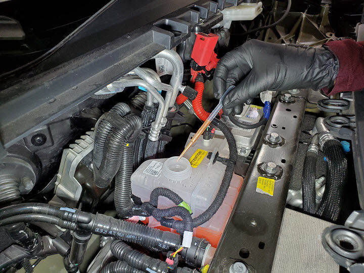将外壳泄漏测试仪从冷却液储液罐压力测试适配器上断开。