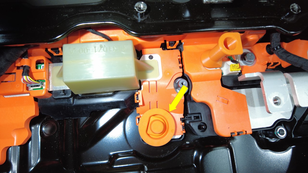 拆下正极母排模块 2 至烟火保险丝上的高压接头绝缘体。