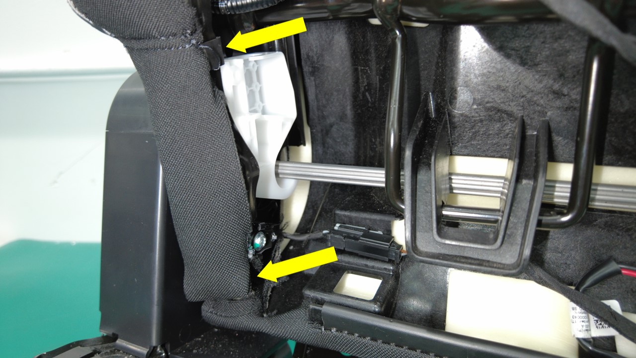 将第三排左侧座椅靠背饰板固定件(2 个)安装到座椅靠背框架上。