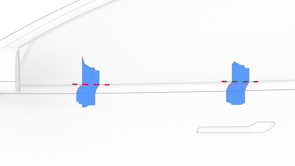 使用间隙和齐平度工具检查 LH 前车窗玻璃的装配情况。