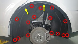 安装将左后轮拱内衬固定到车辆的推拉式卡子(17 个)。