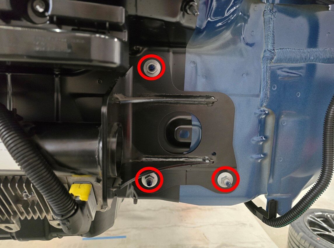 在协助下,将拖车挂钩总成安装到车身螺柱上。