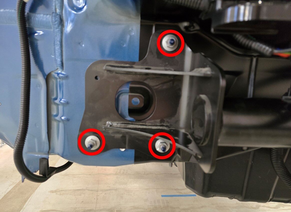 安装将保险杠梁固定到车身上拖车挂钩处的螺母(6 个)。