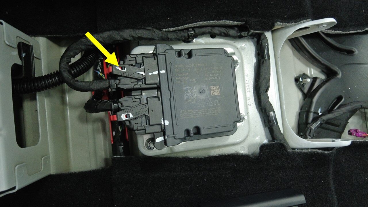 将仪表板线束连接器从约束控制模块 (RCM) 上断开。