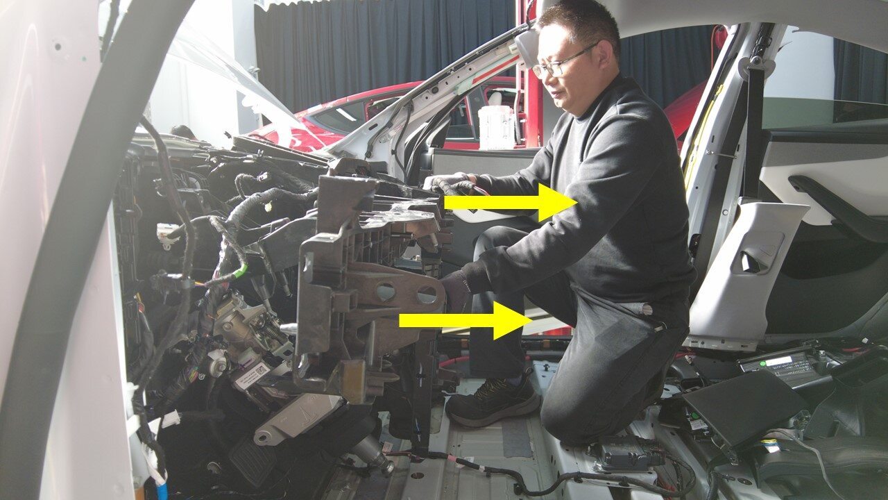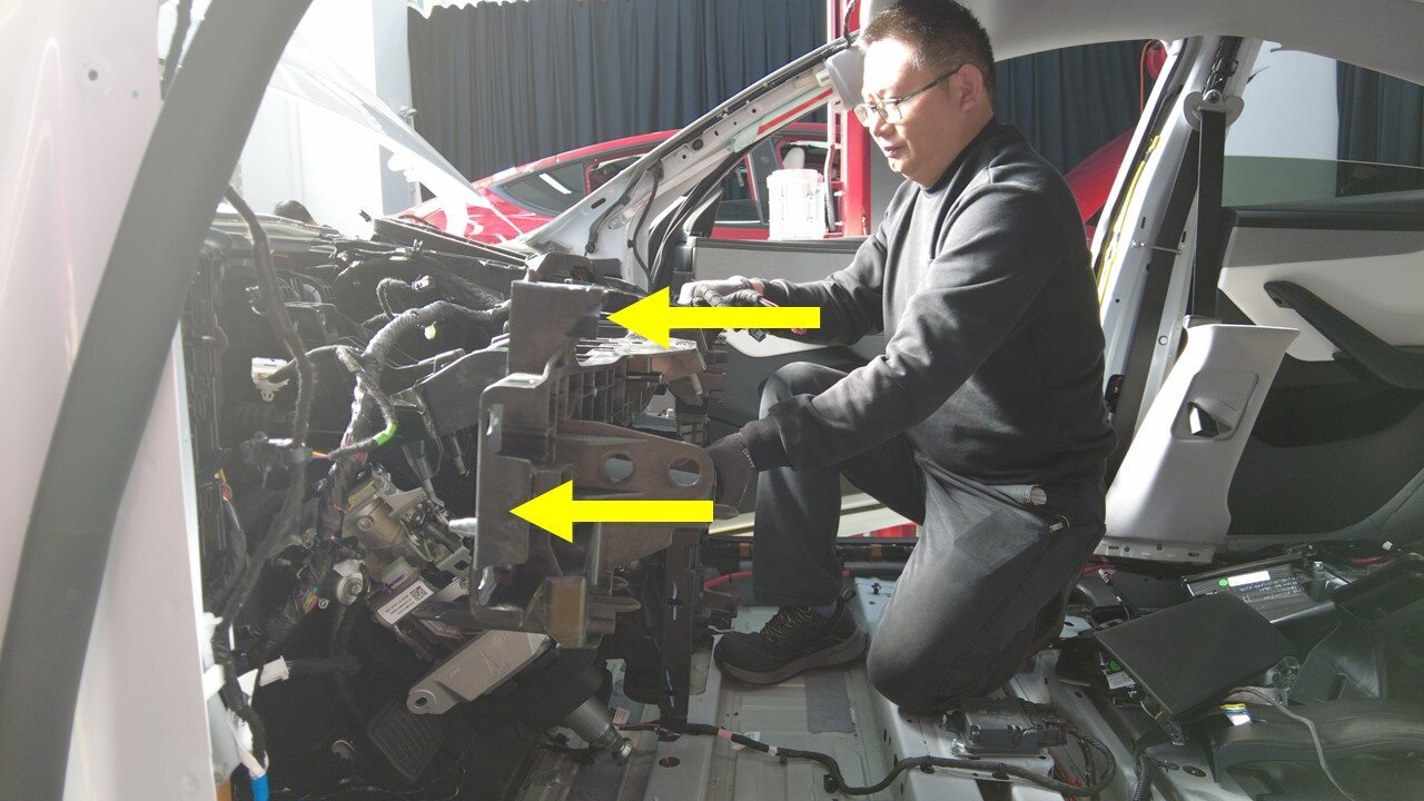 在协助下,将横梁从车辆上拆下。